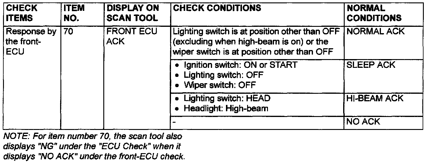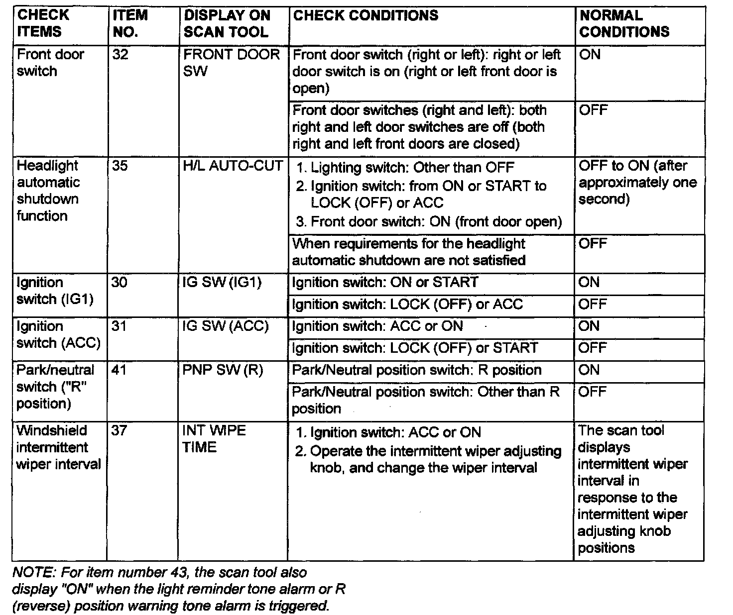 SERVICE DATA CHECK1. Use the scan tool and the SWS monitor kit to check "Service Data." This "Service Data" check is applicable for signals, which are transmitted and received through the SWS communication line. For input signals, which are not compatible with the SWS monitor kit, refer to the Pulse Check procedure (by using the scan tool or voltmeter).