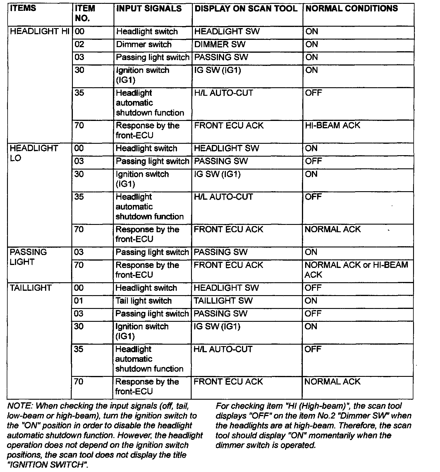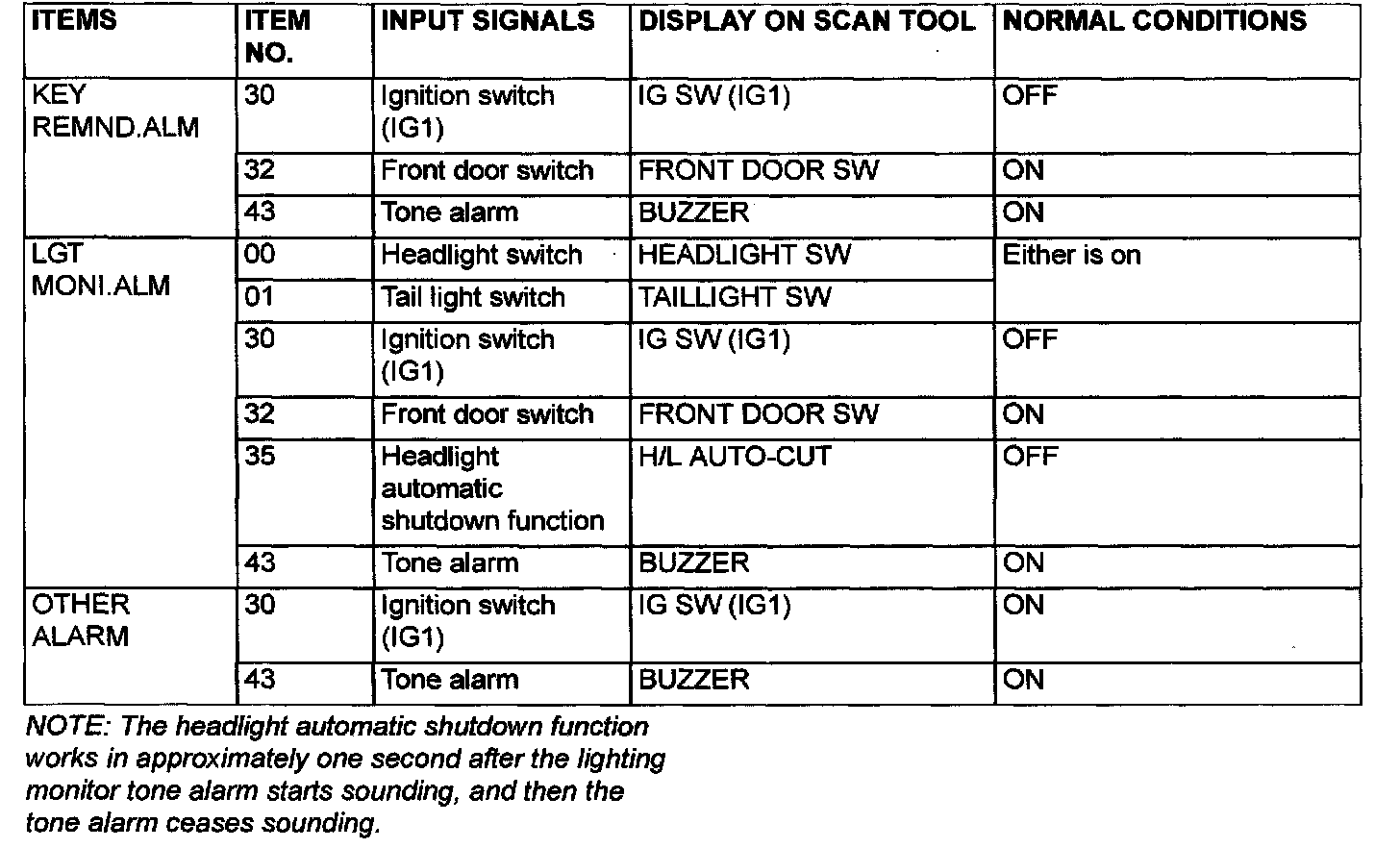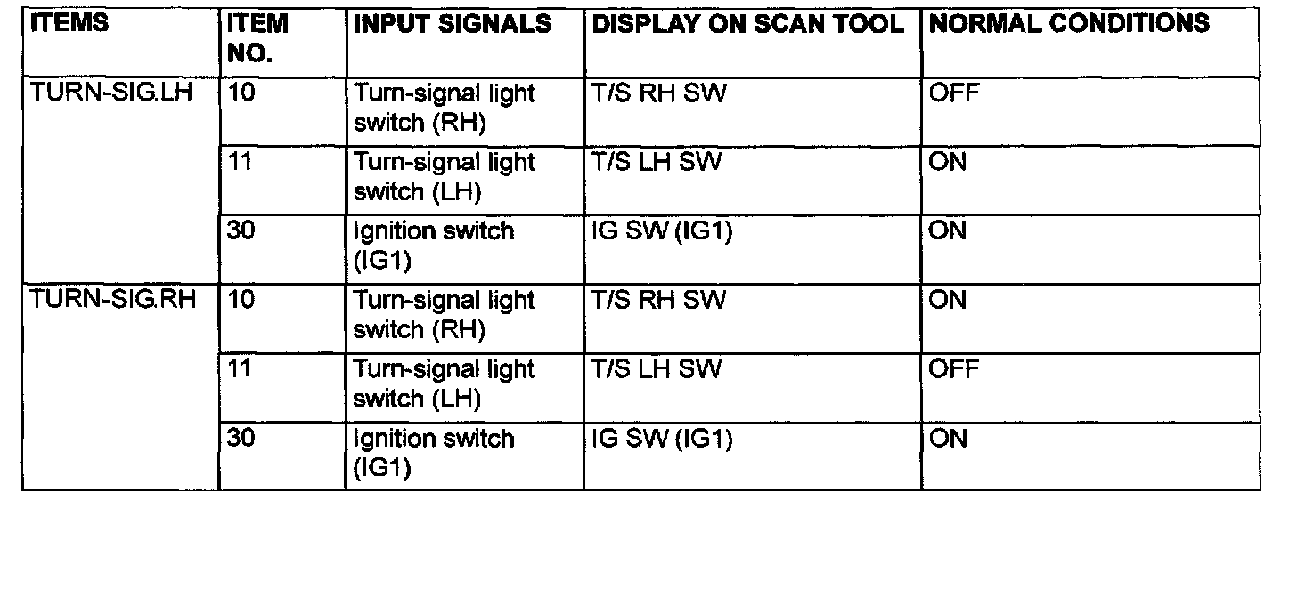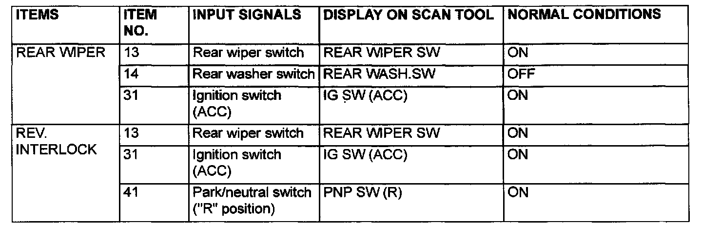 2. The following input signals can be checked by using the scan tool and the SWS monitor kit.