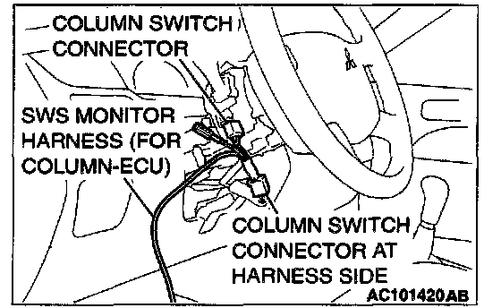 CAUTION: Always turn the ignition switch to the "LOCK" (OFF) position before connecting or disconnecting the SWS monitor kit and scan tool MB991502.