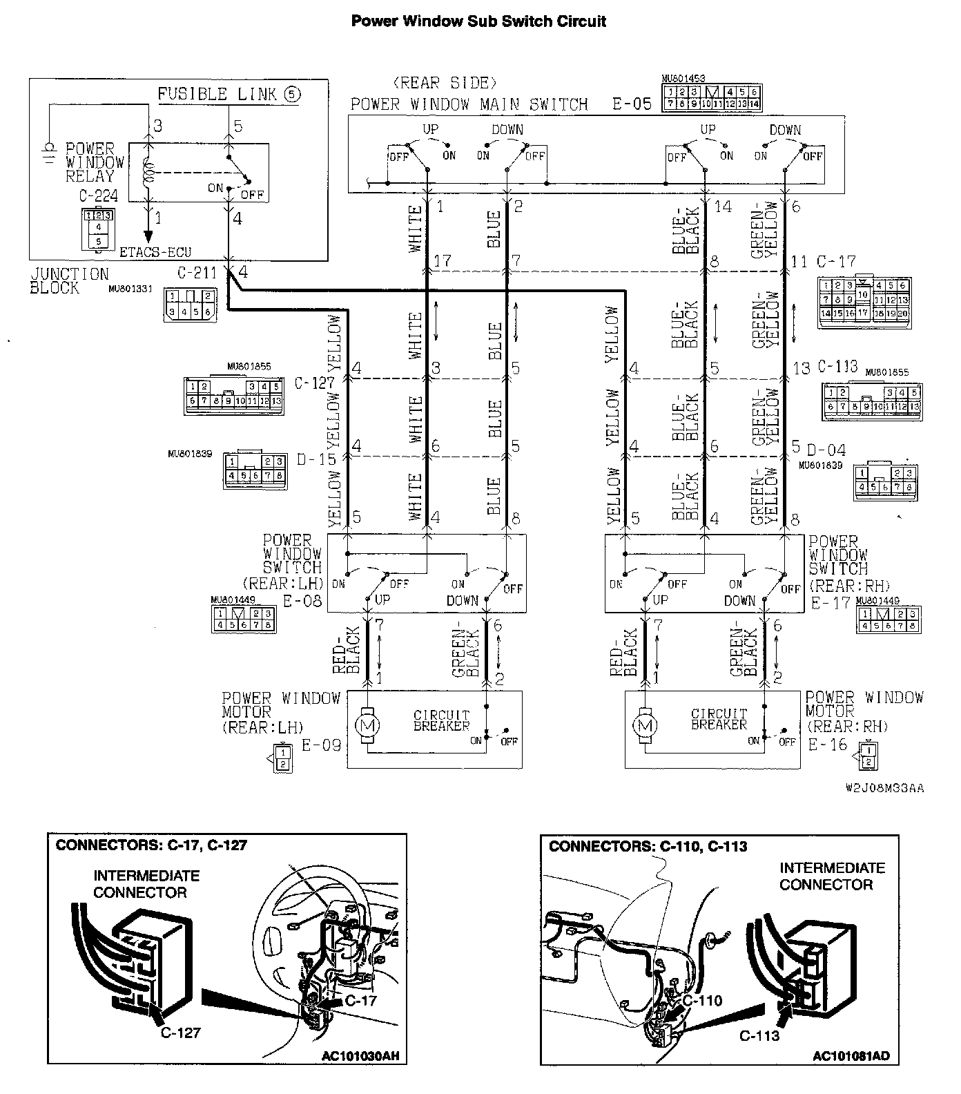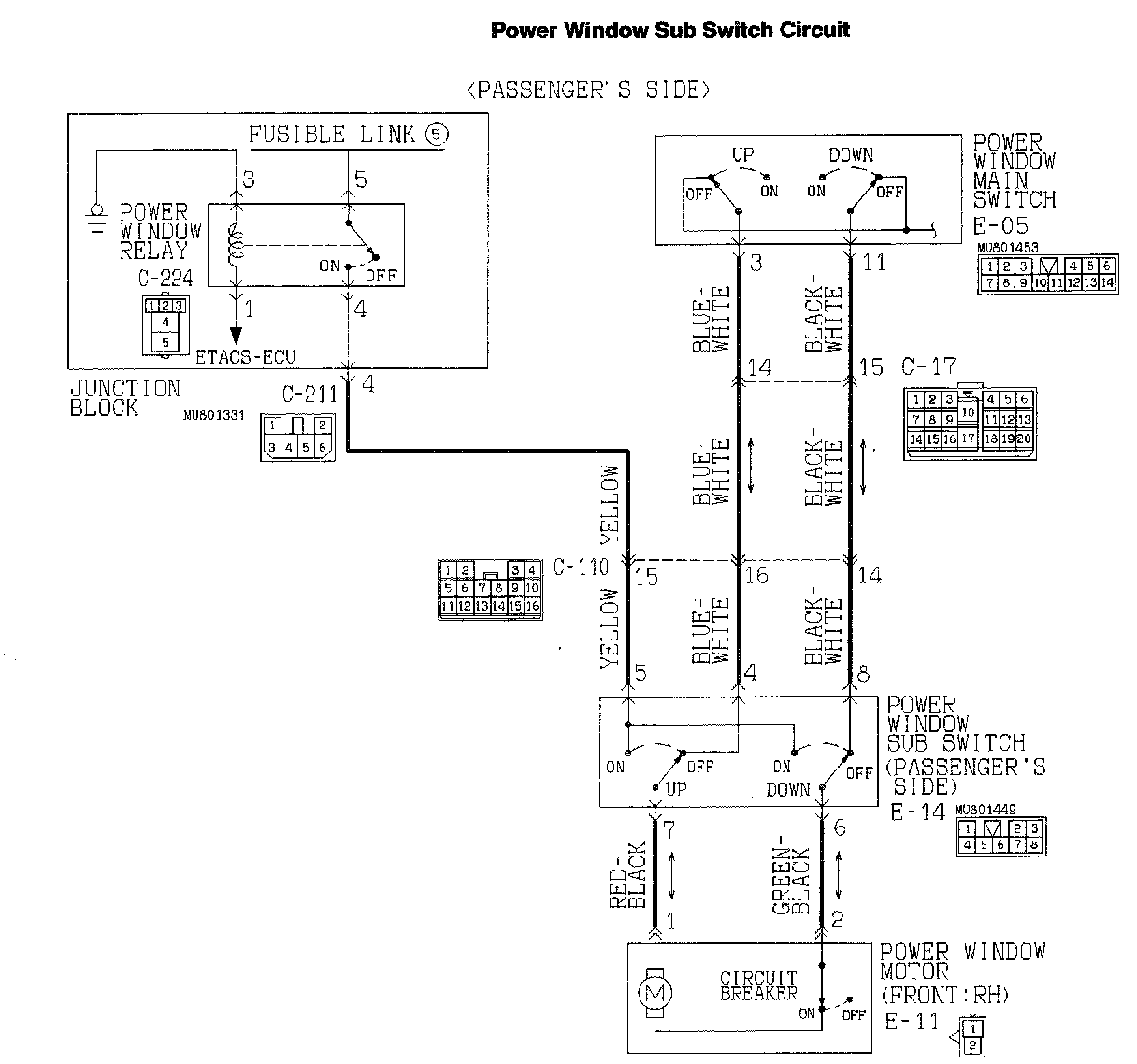 NO: Replace the power window main switch. When the power window sub-switch is operated, the power windows should open or close normally.