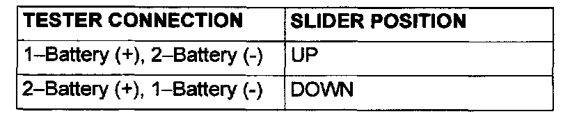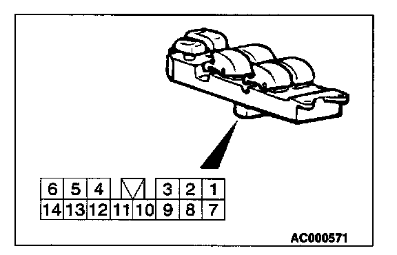 2. Check continuity when each switch on the power window main switch is operated to "UP" or "DOWN" position.