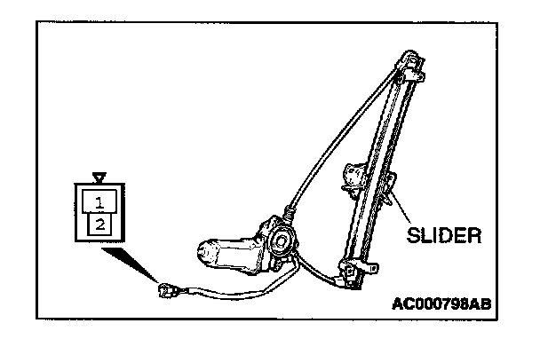 1. Remove the rear power regulator assembly (LH). Refer to Door-Door Glass and Regulator.