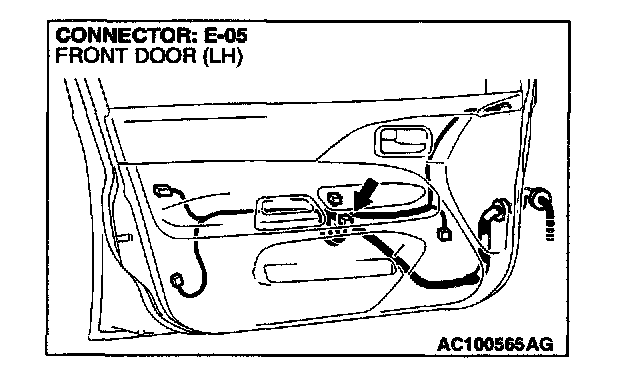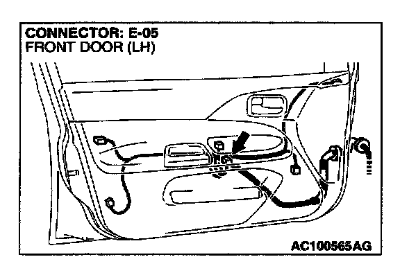 STEP 10. Check power window main switch connector E-05 and front power window sub-switch (RH) connector E-14 for damage.