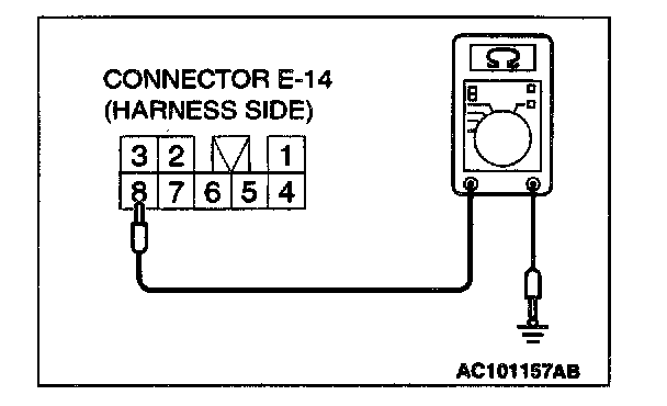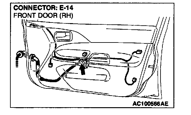 STEP 9. Check at front power window sub-switch (RH) connector E-14 in order to check the ground circuit to the front power window sub-switch (RH).