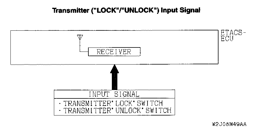 A receiver is incorporated in the ETACS-ECU. This receiver receives a lock or unlock signal from the transmitter.