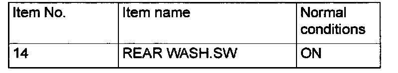 3. Select "REAR WIPER - REAR WIPER" (FUNCTION DIAG.), and check that normal conditions are displayed on the items described in the table.