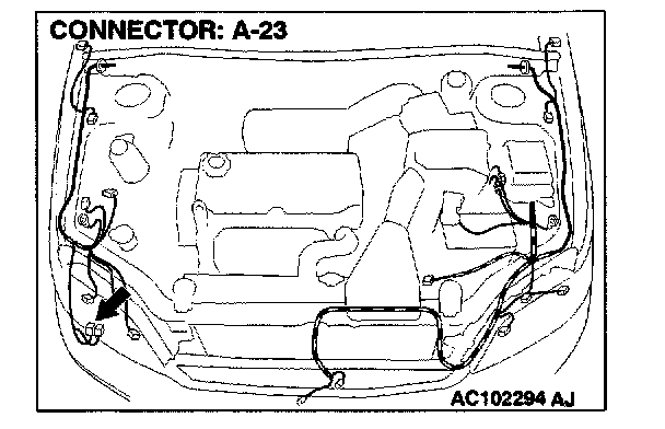 1. Disconnect rear washer motor connector A-23.