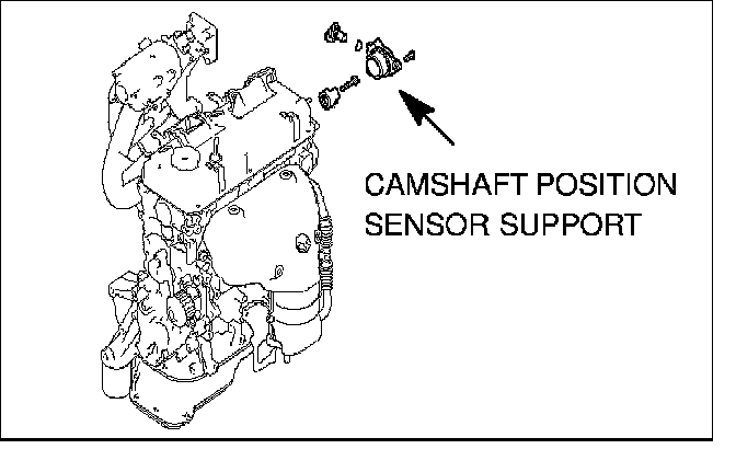 If the MIL comes on and DTC P0335 and/or P0340 are set, check the camshaft position sensor support for wear. If it is worn, replace both the camshaft and the support. Be sure to clean the sensor and reluctor (camshaft position sensing cylinder) of all metal particles before reassembly.