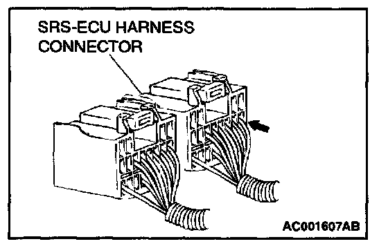 Since the SRS-ECU harness connector is plated to improve conductivity, observe the warning below when checking this connector.