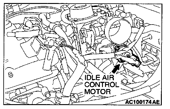 2. Check that the operation sound of the IAC motor can be heard after the ignition is switched to the "ON" position (but without starting the engine).