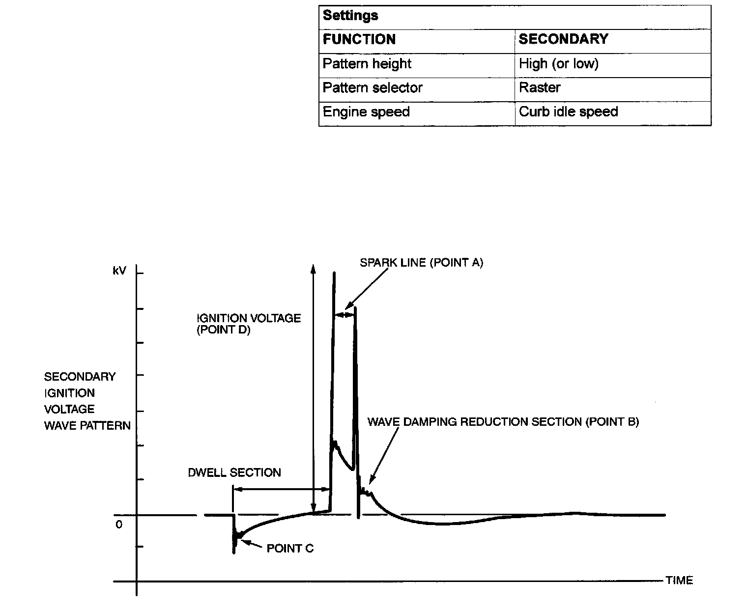 IGNITION SECONDARY VOLTAGE WAVE PATTERN CHECK USING AN OSCILLOSCOPEMEASUREMENT METHOD