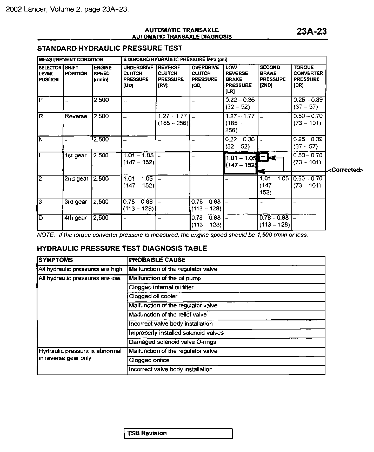 The content of this article/image reflects the changes called out by TSB 03-23-001HYDRAULIC PRESSURE TESTS
