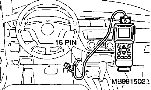 CAUTION: To prevent damage to scan tool MB991502, always turn the ignition switch to the "LOCK" (OFF) position before connecting or disconnecting scan tool MB991502.