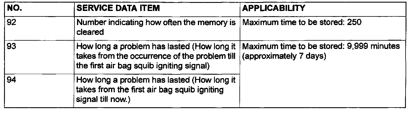 3. Read the data list (fault duration and how many times memories are erased) using scan tool MB991502.