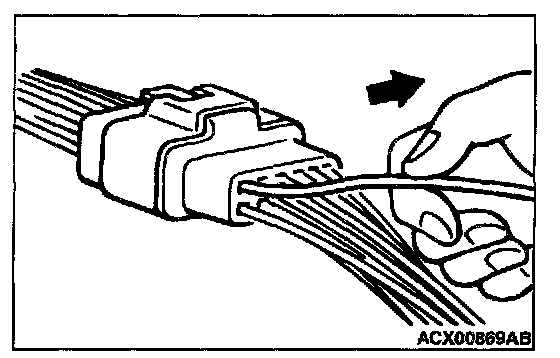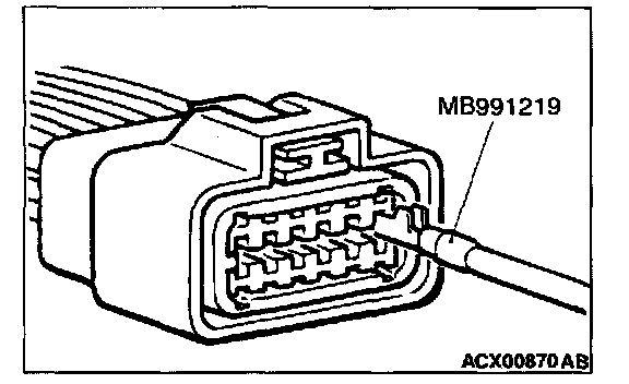 Use special tool, MB991219 to inspect the engagement of the male pins and female pins. [Pin drawing force: 1 N (0.2 pound) or more]