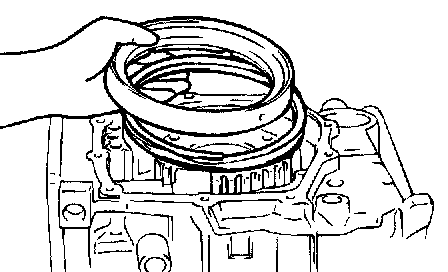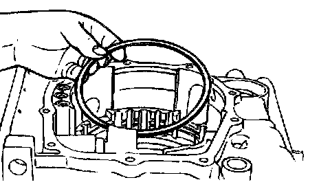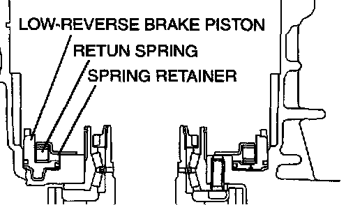 3. Install the low-reverse brake piston, return spring, and spring retainer into the transaxle case