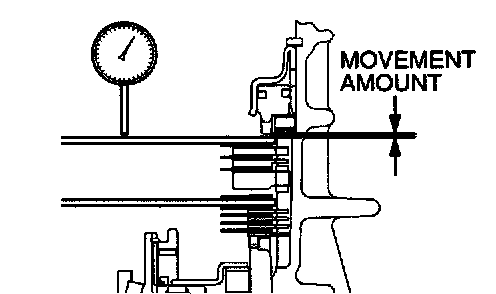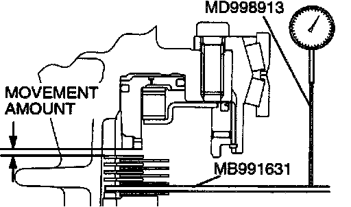 12. Move special tool MB991631 to measure the end play of reaction plate. Then replace the snap ring installed in step 11 to adjust the end play to standard value.