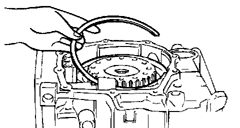 21. Install the snap ring into the groove of transaxle case output shaft bore.