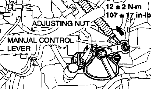2. Loosen the control cable to the manual control lever coupling nut to free the cable and lever.
