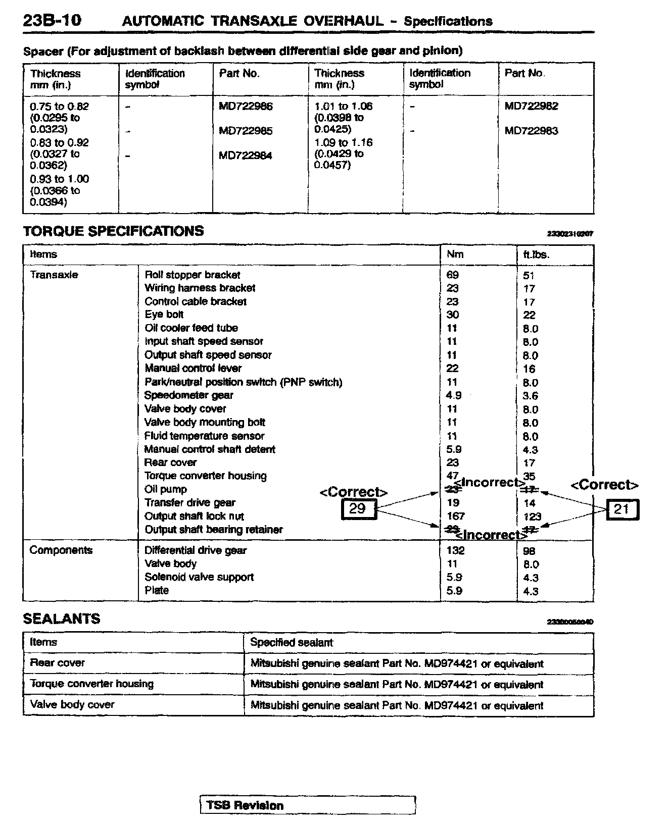 REVISED BOLT TIGHTENING TORQUE VALUES (Diamante, Lancer, Mirage)
