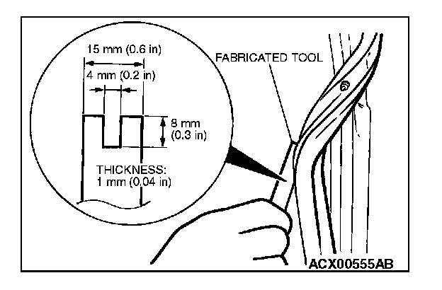 Make a fabricated tool as shown in the illustration to remove the door weatherstrip.