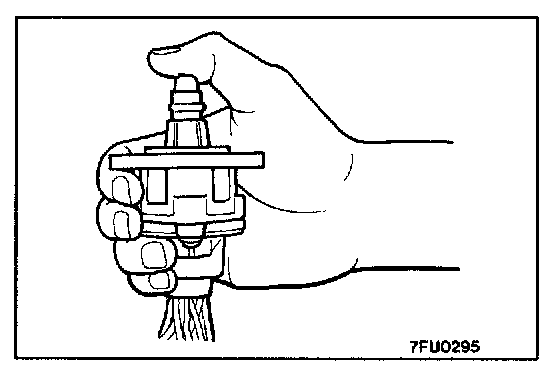 5. With the idle air control motor as shown in the illustration, connect the negative (-) terminal of the power supply to each clip as described in the following steps, and check whether or not a very slight vibration of the stepper motor is generated as a result of the activation of the stepper motor.