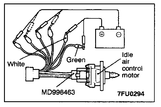 1. Disconnect the idle air control motor connector and connect the special tool (test harness).