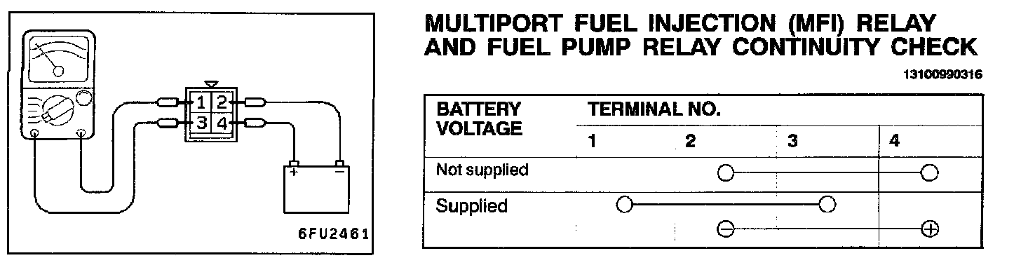 Multiport Fuel Injection (MFI) Relay And Fuel Pump Relay Continuity Check: