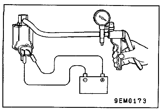 4. Check airtightness by applying a vacuum with voltage applied directly from the battery to the EGR control solenoid valve and without applying voltage.