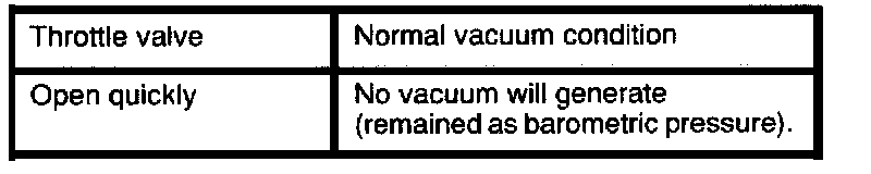2. Regarding the engine in cold and hot conditions, check the condition of vacuum when engine rpm is increased by opening the throttle valve quickly.