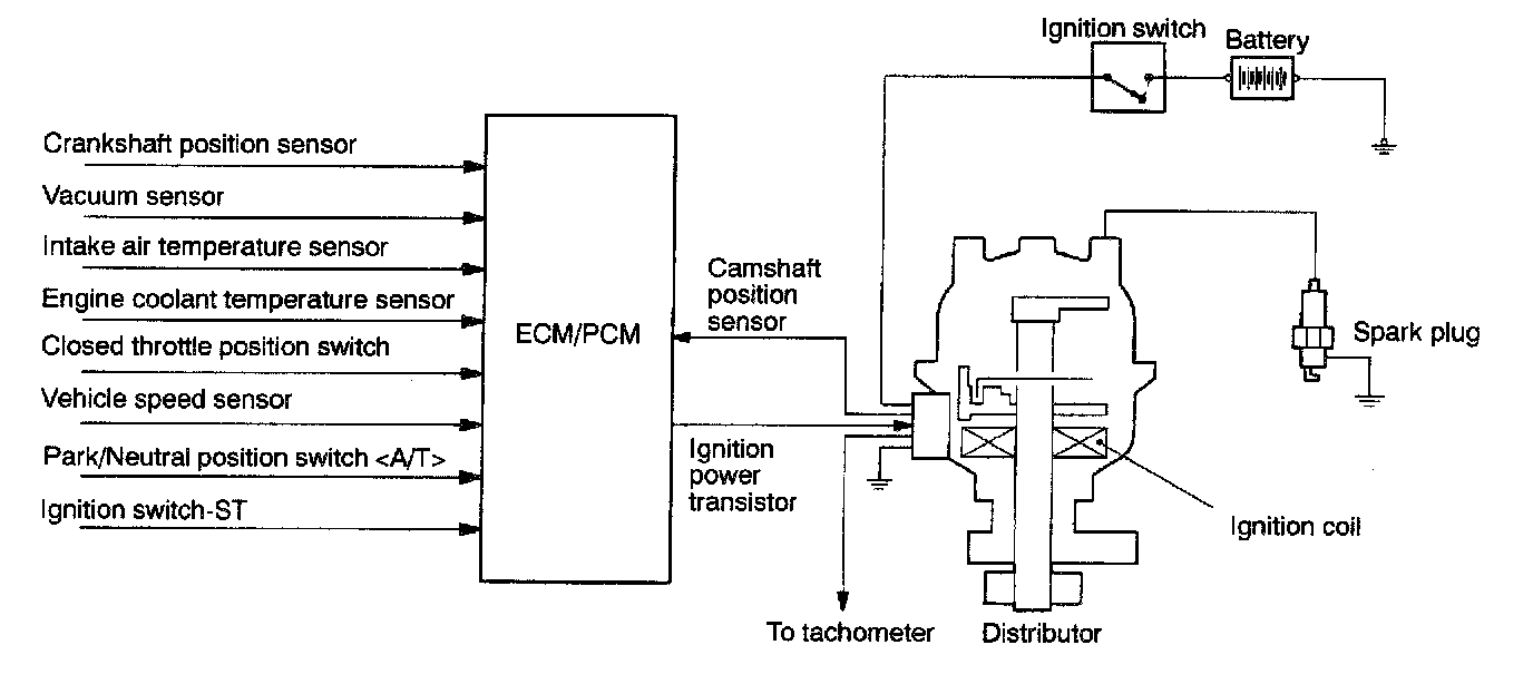 The ECM/PCM detects the crankshaft position by the crankshaft position sensor installed at the front end of the crankshaft to provide ignition at the most appropriate timing for the engine operating condition.