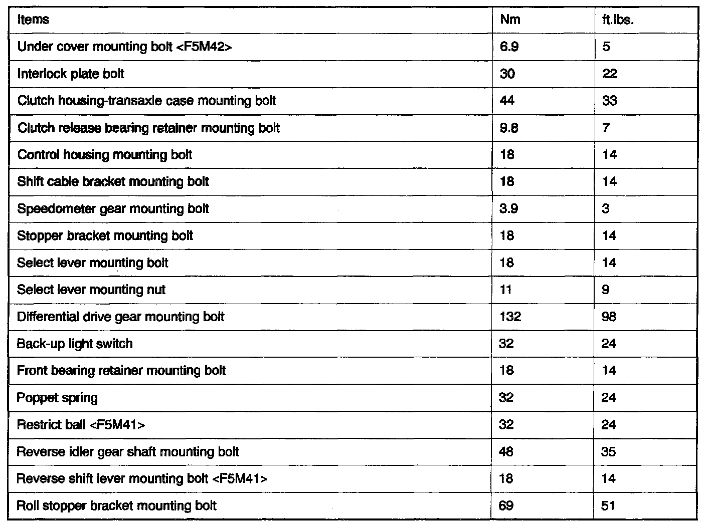 TORQUE SPECIFICATIONS