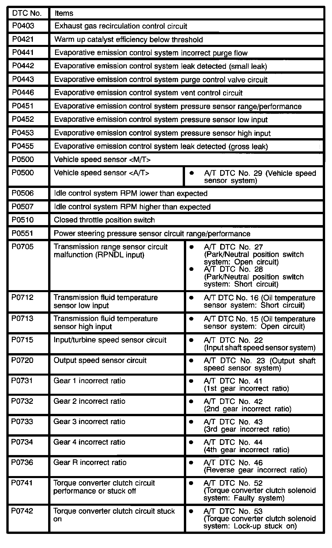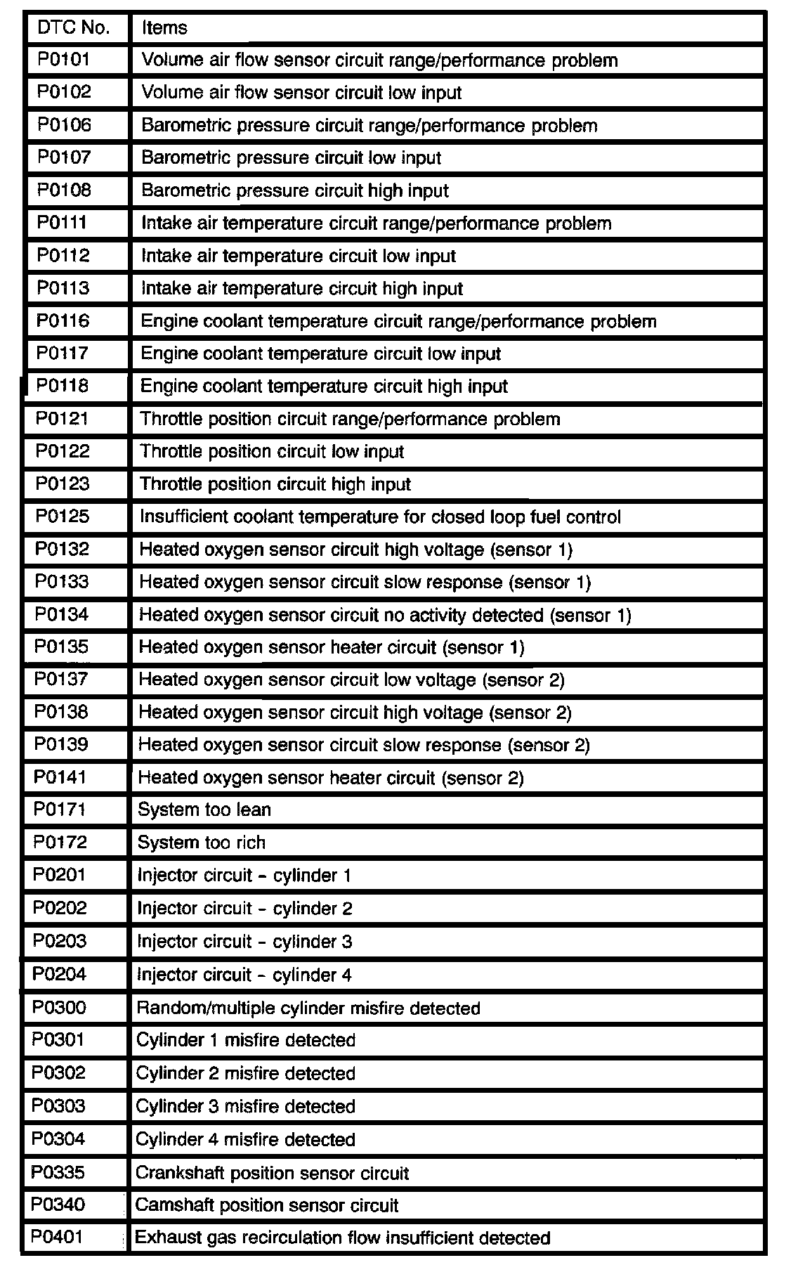 INSPECTION CHART FOR DIAGNOSTIC TROUBLE CODESP0101 - P0401: