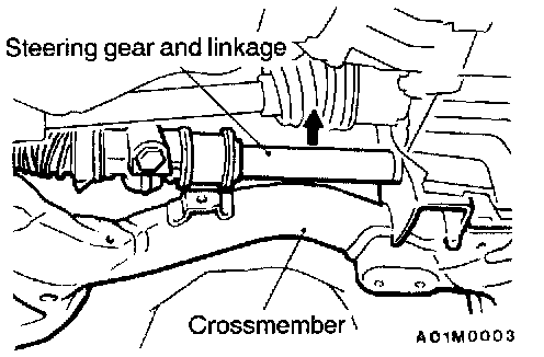 1. Move the crossmember while supporting the steering gear and linkage in the direction shown by the arrow.