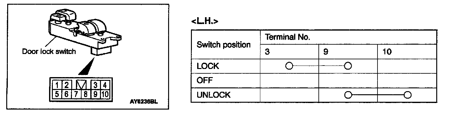 Door Lock Switch Continuity Check <L.H.>: