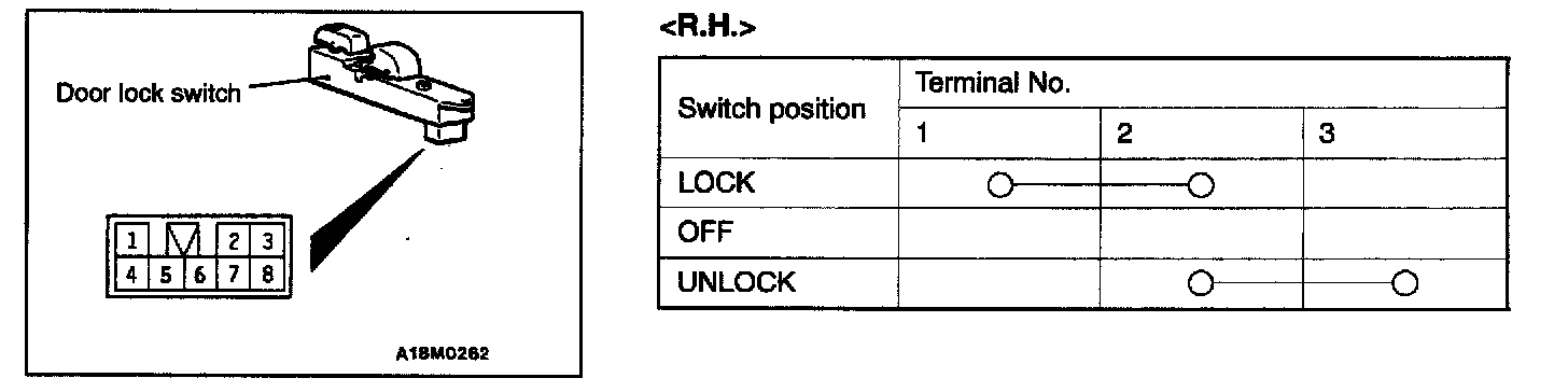 Door Lock Switch Continuity Check <R.H.>: