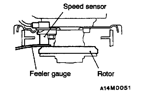 Insert a feeler gauge into the space between the speed sensor's pole piece and the rotor's toothed surface, and then tighten the speed sensor bracket at the position where the clearance is the standard value all around.