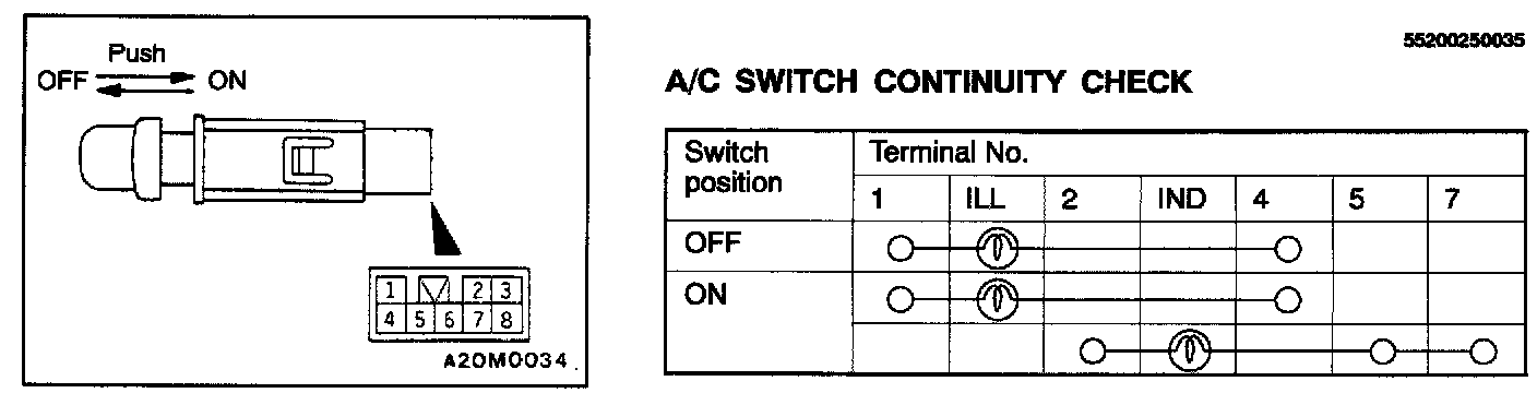 A/C Switch Continuity Check:
