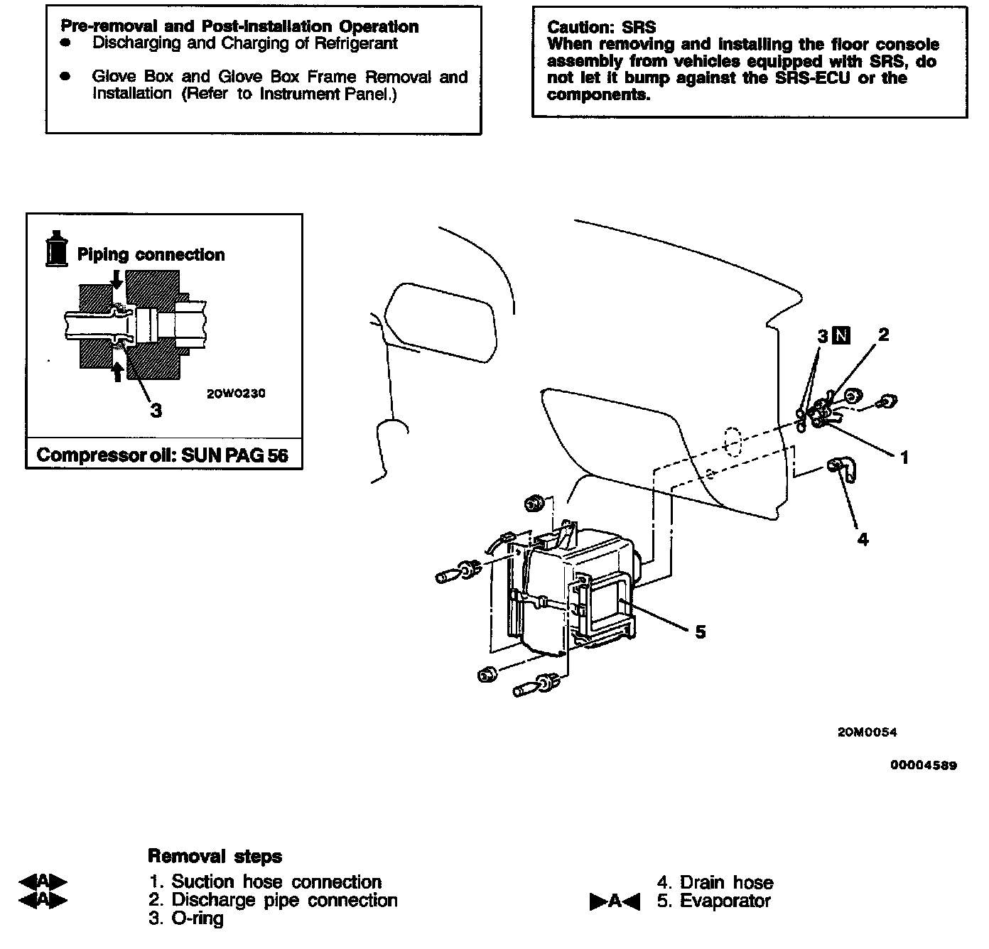 Plug the disconnected hose and the evaporator nipple not to let foreign matter get into them.