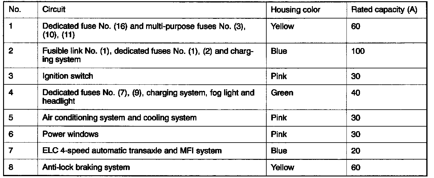 Fusible Link 1 - 7 (Relay Box In Engine Compartment):