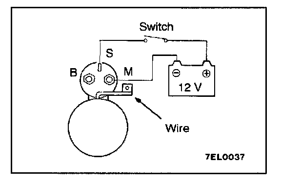 2. Connect a 12 V battery between the S-terminal and the M-terminal.