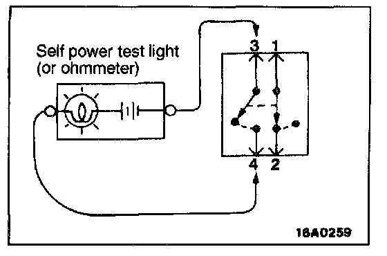 2. When the switch is the ON position, the self power test light should come on or the ohmmeter should read 0 ohm, only when the terminals 3 and 4 are interconnected.