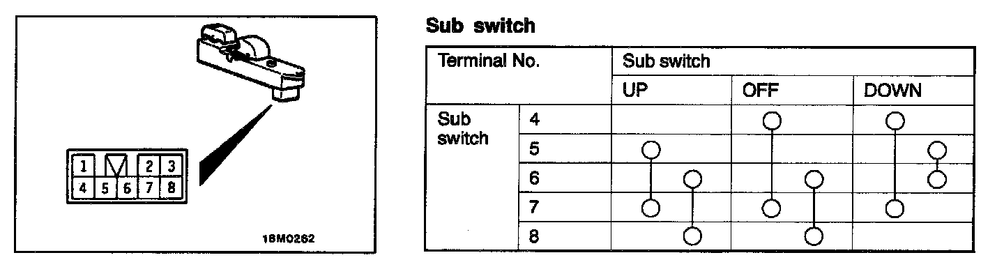 Power Window Switch Continuity Check - Sub Switch: