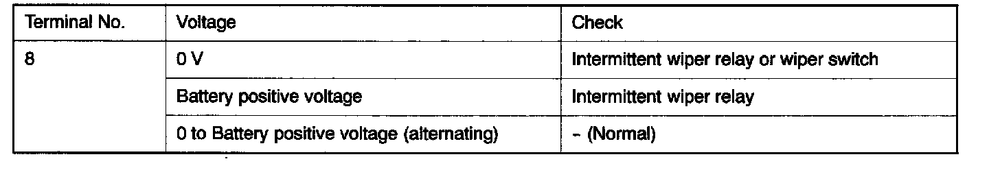 - Check terminal voltage of steering-column switch (with a built-in intermittent wiper relay) with the intermittent wiper relay energized.