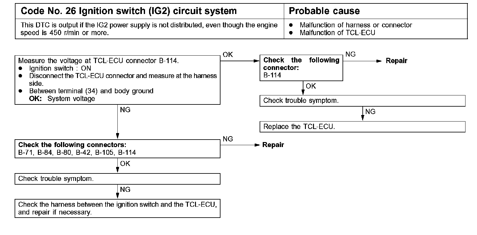 Code No. 26 Ignition Switch (IG2) Circuit System: