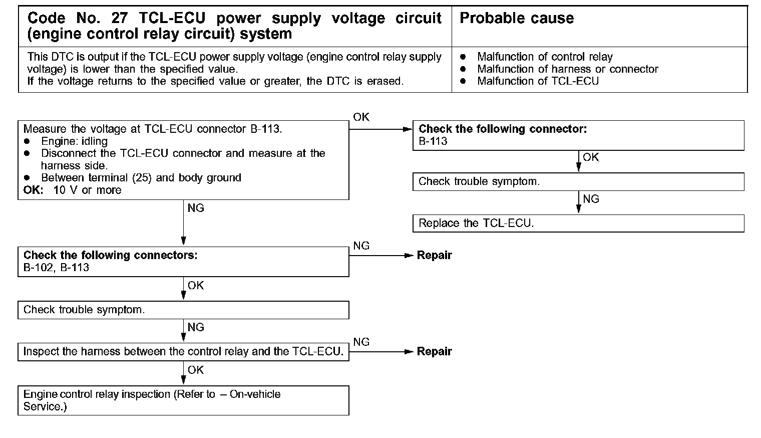 Code No. 27 TCL-ECU Power Supply Voltage Circuit (Engine Control Relay Circuit) System: