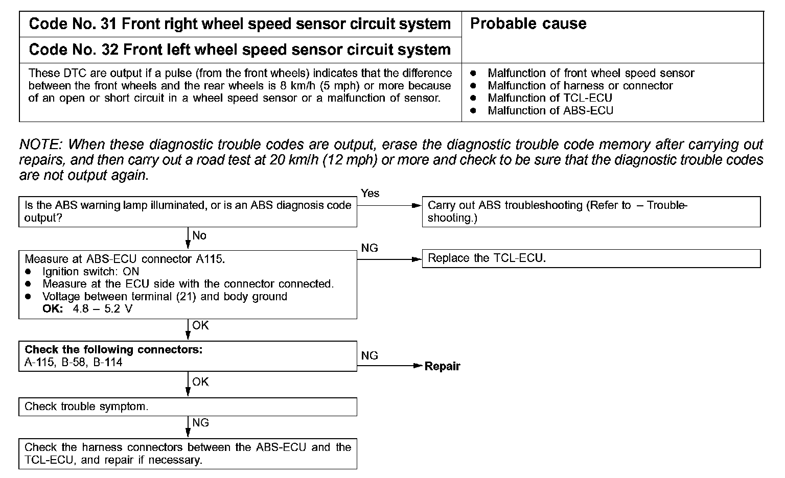Code No. 31, 32 Front Right/Left Wheel Speed Sensor Circuit System: