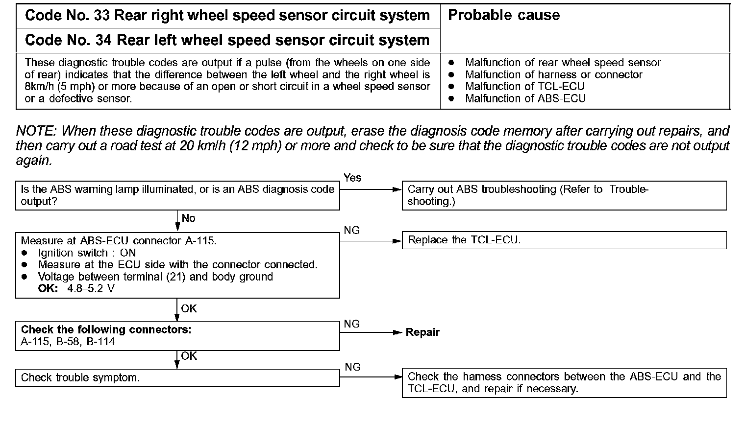 Code No. 33, 34 Rear Right/Left Wheel Speed Sensor Circuit System: