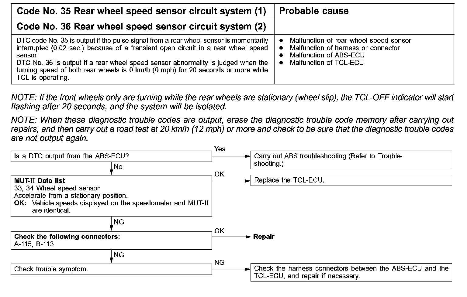 Code No. 35, 36 Rear Wheel Speed Sensor Circuit System (1), (2):