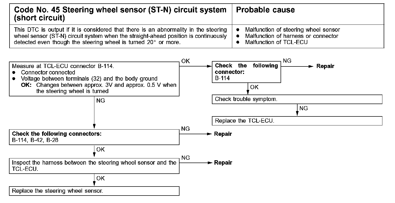 Code No. 45 Steering Wheel Sensor (ST-N) Circuit System (Short Circuit):